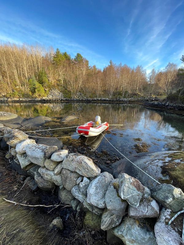 Und so packt uns das Wanderfieber. Quer über die Bucht flitzt das Beiboot mit uns zu einem guten Ausgangspunkt für die Erklimmung von einem 607m hohen Berg. Der Blick ist aufmerksam ins Wasser gerichtet um durch das unkartografierte Gebiet zu navigieren. Das Beiboot wird mit Heckanker geankert, leicht an Land gezogen und mit Leinen am Ufer befestigt. Bei der Rückkehr geschätzte 5h später wird es durch die Flut vollständig im Wasser schwimmen.
