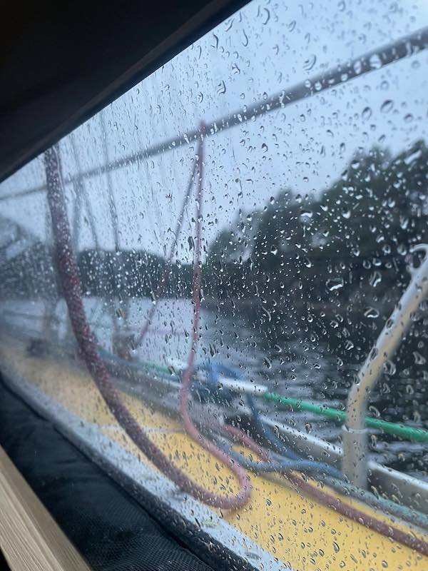 Ein verrückter Tag geht in eine böige Nacht über. Hin und wieder knirschen die Landleinen, die von den Böen stramm gezogen werden. Wir sind all den Bäumen und Steinen dankbar, die uns auf Position halten und uns einen erholsamen Schlaf ermöglichen.