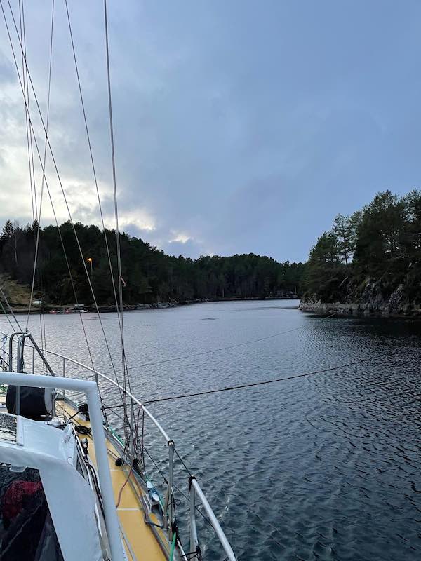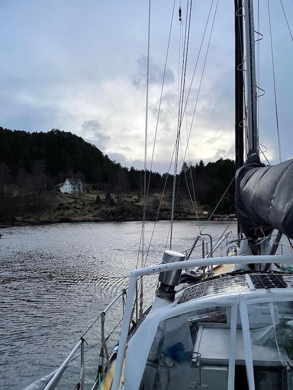 Wir liegen schon im Bett, haben den Ofen aus aufgrund der Windvorhersagen und das heisse Wasser ist in der Thermosflasche bereit für morgen früh. Im Übergang von Wach und Schlaf heult plötzlich das Rigg, das Schiff bewegt sich seitwärts und neigt sich schräg. Unsere Gedanken liegen bei der Küche und beim Tisch, wo gerne Gläser auf den nächsten Tag warten. Ob diese runterfallen? Und so geht es einige Fallböen weiter bis David aufsteht um nach möglichen Fallgeschossen zu schauen.